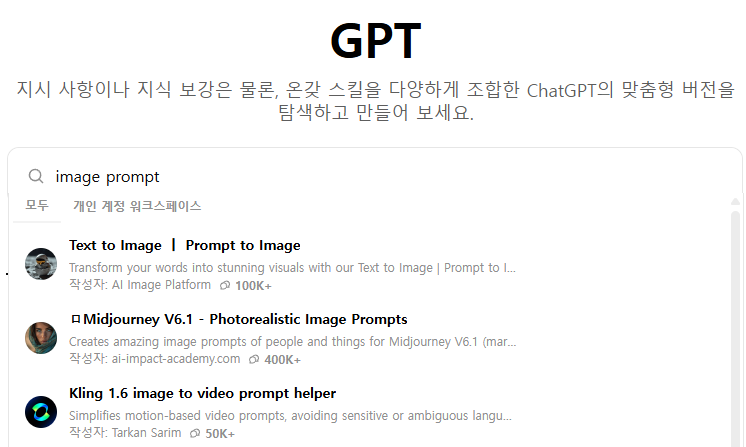 3. 입력창에 image prompt..를 입력해 나오는 프롬프트 생성기를 고른다.