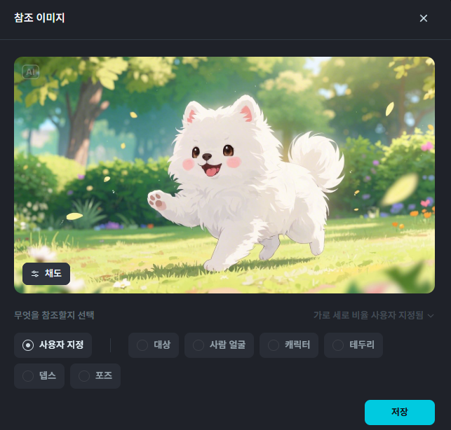 2. 참조 이미지가 업로드 되면 사진에서 무엇을 참조할 지 선택한다. [대상]을 선택해 보았다.