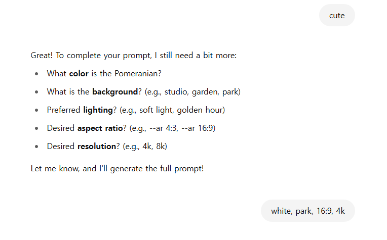 프롬프트를 좀 더 정교하게 작성하기 위해 GPT 를 이용해 프롬프트를 작성한다.
