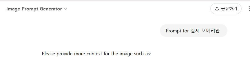 4. Image Prompt Generator를 선택한 후 아래처럼 입력하면, 세가지 스타일의 프롬프트를 제시해 준다.