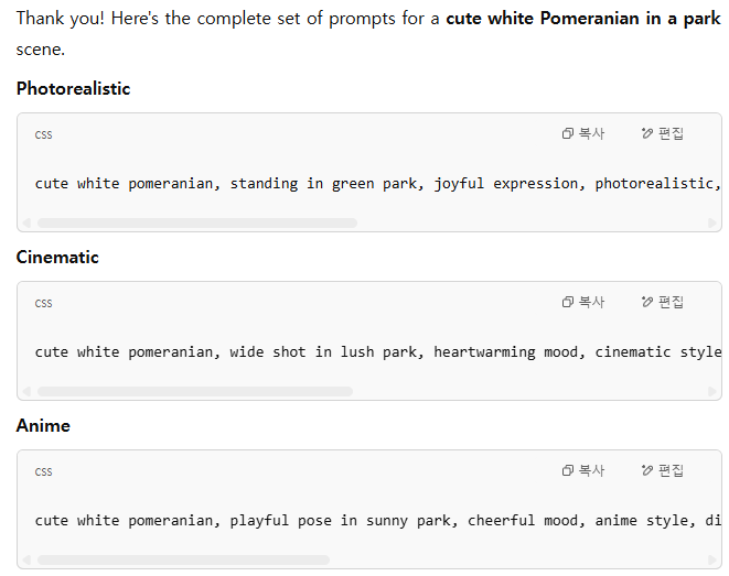 4. 프롬프트 수정을 원하면 사진 아래 연필 이모티콘을 클릭 하면 프롬프트도 수정할 수 있다.