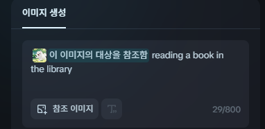 3. 무엇을 참조할 지 선택하면 [이 이미지의 <대상>을 참조]가 프롬프트에 뜬다. 그럼 그 뒤에 추가로 프롬프트를 넣으면 된다.