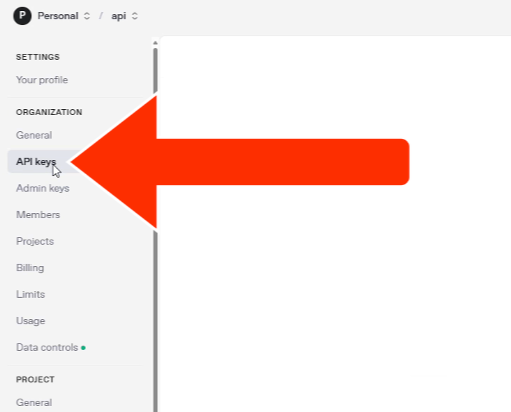 6. 좌측 메뉴에서 [API keys]를 클릭한다.