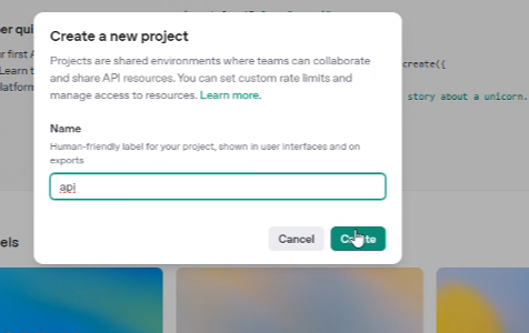 4. [Create a new project] 팝업창에 새 프로젝트 이름을 입력한다.