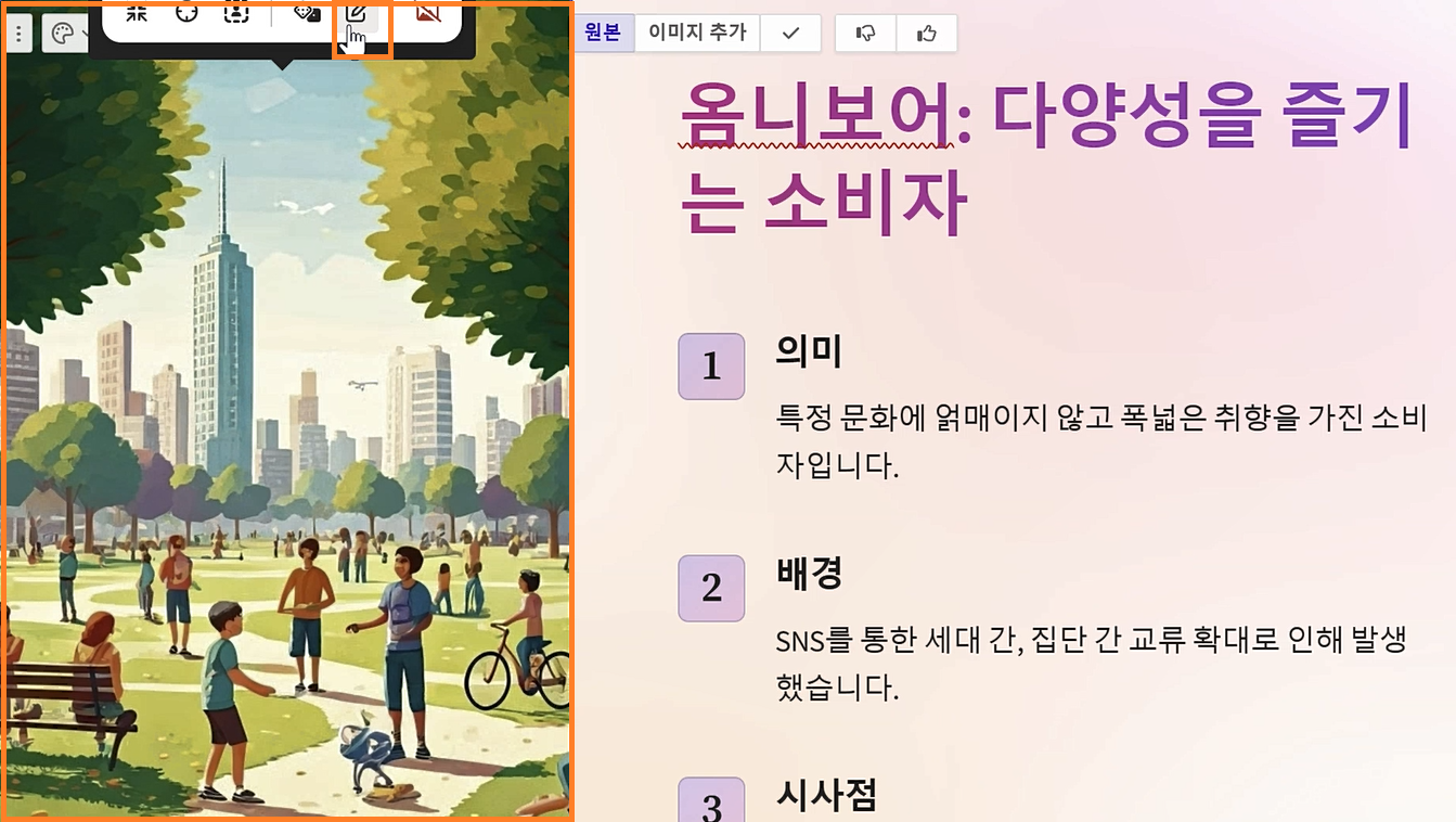 1. PPT와 함께 생성된 이미지 중 아무 이미지를 클릭 해 [강조 이미지 수정]을 클릭한다.