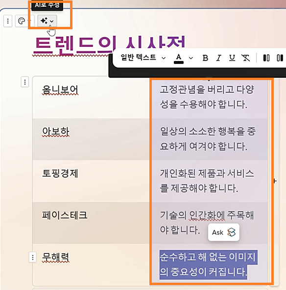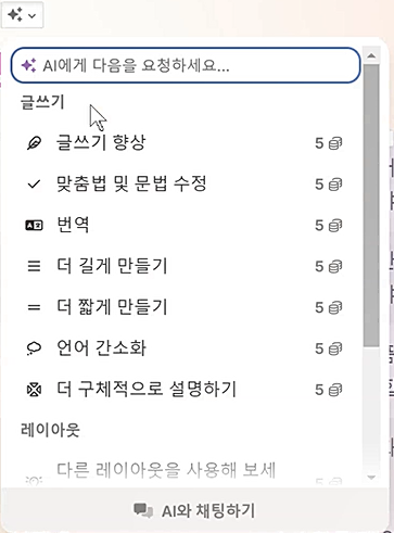 1. 생성된 글을 드래그 한 후 [AI로 수정]을 클릭한다.