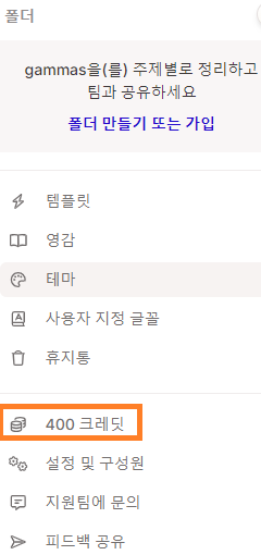 Gamma에 가입하면 400크레딧을 받을 수 있다.