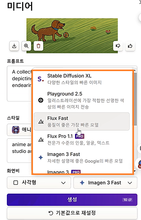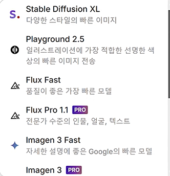 무료 버전에서도 여러 이미지 생성 모델을 선택할 수 있지만, 제한된 모델들도 있다.
