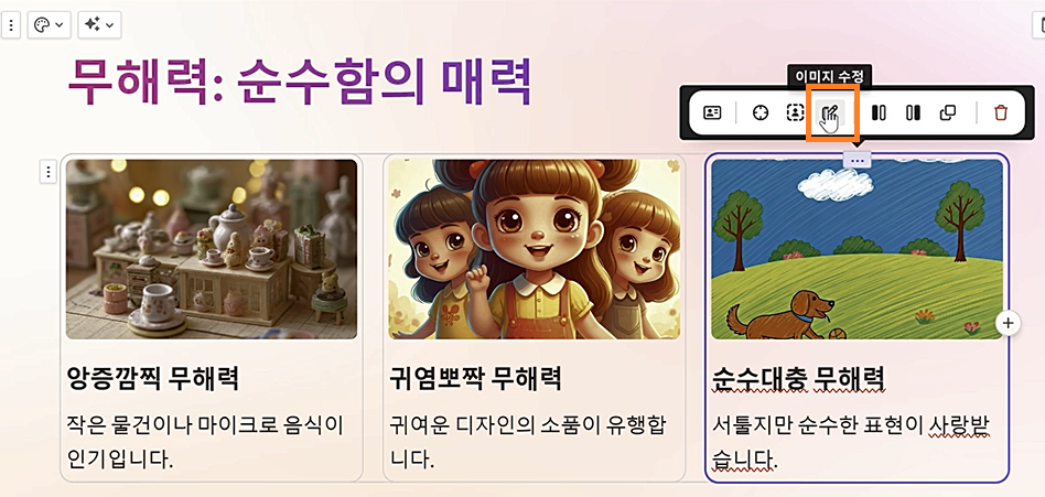 1. 이미지를 클릭한 후 [이미지 수정]을 클릭한다.