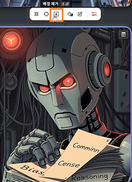 이미지 클릭 후 [배경 제거]를 클릭하면 배경을 제거할 수 있다.