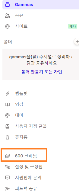 Gamma가 처음이라면, 아래 링크로 들어가서 가입하면 처음부터 600 크레딧을 받을 수 있다.