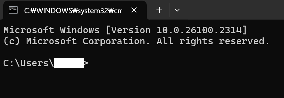 1. 터미널을 연다. (Window+R 클릭 후, cmd를 선택하면 아래 처럼 터미널이 열린다.